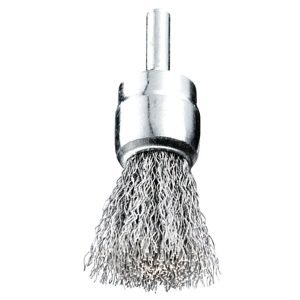 4,00€Spazzola a pennello con codulo mm 6 Fili acciaio ondulati mm 0,30 Diametro mm 15/25 Altezza fili mm24/27 Adatta per lavori frontali