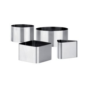 12,00€Acciaio inox Pz 1 cm 7,5 h 5 – Pz 1 cm 10,5 h 5 Pz 1 cm 8×8 h 5 – Pz 1 cm 6,5×6,5×6,5 h 5 Adatto per comporre e impiattare alimenti Lavabile in lavastoviglie