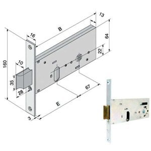 27,00€Serratura infilare porte scorrevoli Catenaccio a gancio Foro chiave patent Frontale bordo tondo mm 16×160 Incontro mm 18×90 Scatola mm 70×100 spessore 13 – Entrata mm 50 Coppia maniglie ovali mm 34×120 incasso 1 chiave