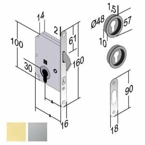 23,00€Serratura infilare porte scorrevoli Catenaccio a gancio Foro chiave cilindro europeo non incluso Frontale bordo tondo mm 16×160 Incontro mm 18×90 Scatola mm 70×100 spessore 13 – Entrata mm 50 Coppia maniglie tonde mm 48 incasso