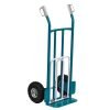 Telaio acciaio tubolare mm 30 verniciato Ruote pneumatiche – Cerchione plastica Gabbia rulli mm 260Peso kg 12,5 – Portata kg 250 Piano ribaltabile 50 – Ruote e maniglie assemblate Dimensioni cm 56×17 h 110