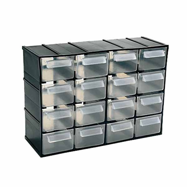 + spedizione, o ritiro in negozioSerie 800 Assemblabile ad incastro 16 cassetti trasparenti con portaetichetta Misure blocco: mm 221×85 h 156 Misure cassetti: mm 52×82 h 35