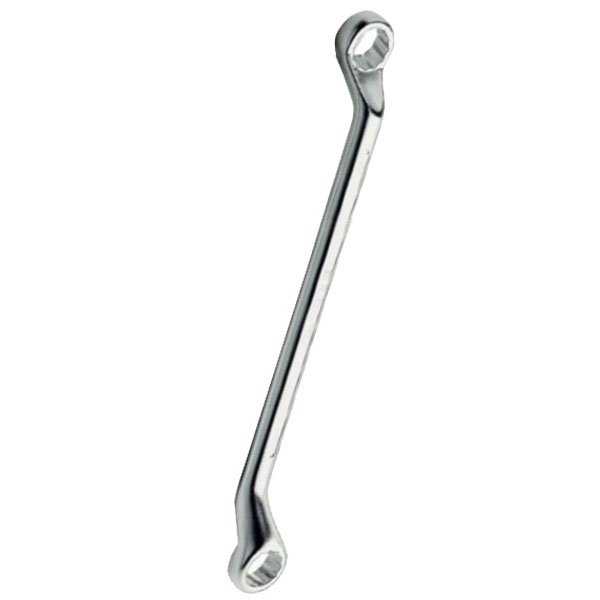 Testa poligonale piegata 75^ a doppia curva profonda Esecuzione cromata opaca Lunghezza totale mm 310 Adatta per ponteggi