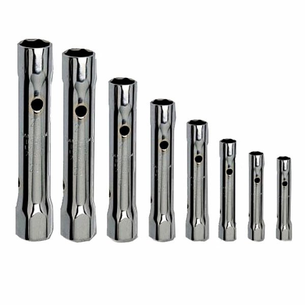 Serie 8 chiavi tubo trafilate tubolari Bocche esagonali Acciaio Cromo Vanadio esecuzione cromata Composizione: 6x 7 8x 9 10×11 12×13 14×15 16×17 18×19 20×22