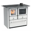 Dimensioni 98×67 h 85 – Uscita 13 – Peso kg 145 Uscita fumi superiore o posteriore Potenza kW 7,36 – mc 166 Struttura acciaio smaltato Piastra ghisa smaltata Focolare vermiculite/refrattario Portina focolare doppio vetro Forno acciaio inox – Portinavetro doppia Cassettone portalegna
