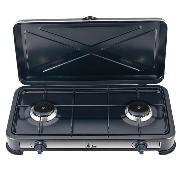 Acciaio verniciato a polveri epossidiche nero Bruciatori alluminio gas GPL Potenza kW 1,1+1,1 Coperchio e griglia asportabili Accensione tradizionalePiedini antisdrucciolo