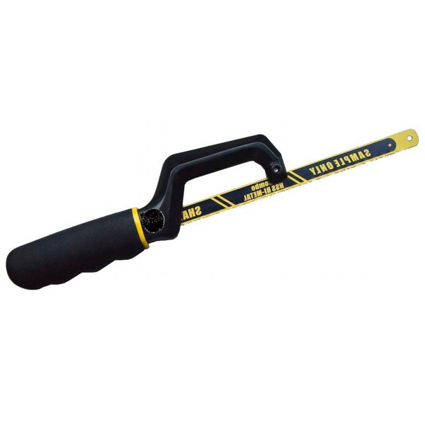 Impugnatura portalama per metallo Struttura plastica – Manico rivestito gomma Fissaggio lama con vite metallo Sporgenza lama regolabile Lama HSS BIMETAL inclusa