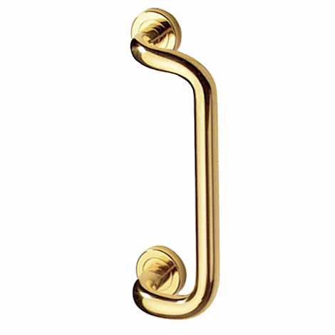 Serie MILENA – Ottone lucido Zancato – Diritto – Bocchette mm 45 Dimensioni da centro fori mm 84×220 Adatto porte legno