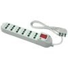 Materiale termoplastico 6 prese bipasso 2P+T 10/16A 1 spina squadra 2P+T 16A Interruttore luminoso Lunghezza cavo m 1,5 – Sezione cavo mmq 3×1 Colorebianco