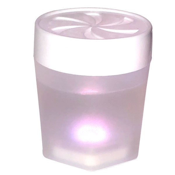 Profumatore in gel Coperchio regolatore di intensita’ Durata profumazione 45 giorni Led multicoloreAlimentazione 1 batteria CR2032 inclusa
