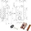 Serratura pompa applicare legno Chiusura laterale- Pomolo interno Catenacci laterali 4 pistoni e scrocco Misura scatola mm 80x152x30 – Entrata mm 42Diametro cilindro mm 30 lunghezza mm 50 3 chiavi C10