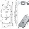 Serratura doppio cilindro europeo a planare Fori protettore mm 38 Movimento ad ingranaggi 2 chiusure verticali Catenacci laterali 4 pistoni e scroccoreversibile Interasse catenacci mm 26 Scatola mm 140x305x30 – Entrata mm 70 Cilindri non inclusi