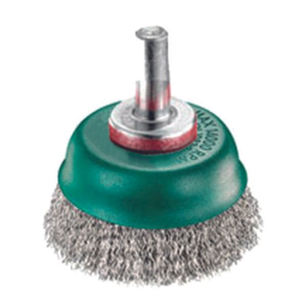 Spazzola a tazza con codulo Fili acciaio inox ondulato mm 0,30 Diametro mm 75 Gambo mm 6
