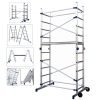 Struttura alluminio smontabile e pieghevole Sezione tubolare 60×24 – Trasformabile in scale Dimensioni cm 156×58 h 159/310 – Con ruote Portata max kg150 – Peso complessivo kg 34,50 Dotazione 1 ripiano alluminio/legno melaminico