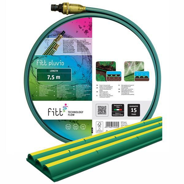 Tubo microforato verde a tre vie con raccordi in ottone. Adatto per irrigazione in orti e giardini,con ampia portata, per un uso semi-professionale.Garantisce irrigazione a pioggia uniforme nebulizzata e puo’ essere utilizzato per irrorazione o per impregnamento. Pressione utilizzo consigliata: min bar 2/max bar 4 Temperatura utilizzo -10^ + 50^